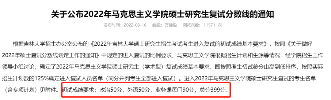 在今年的院校复试线中,吉林大学马克思主义学院初试成绩要求达到了399分。